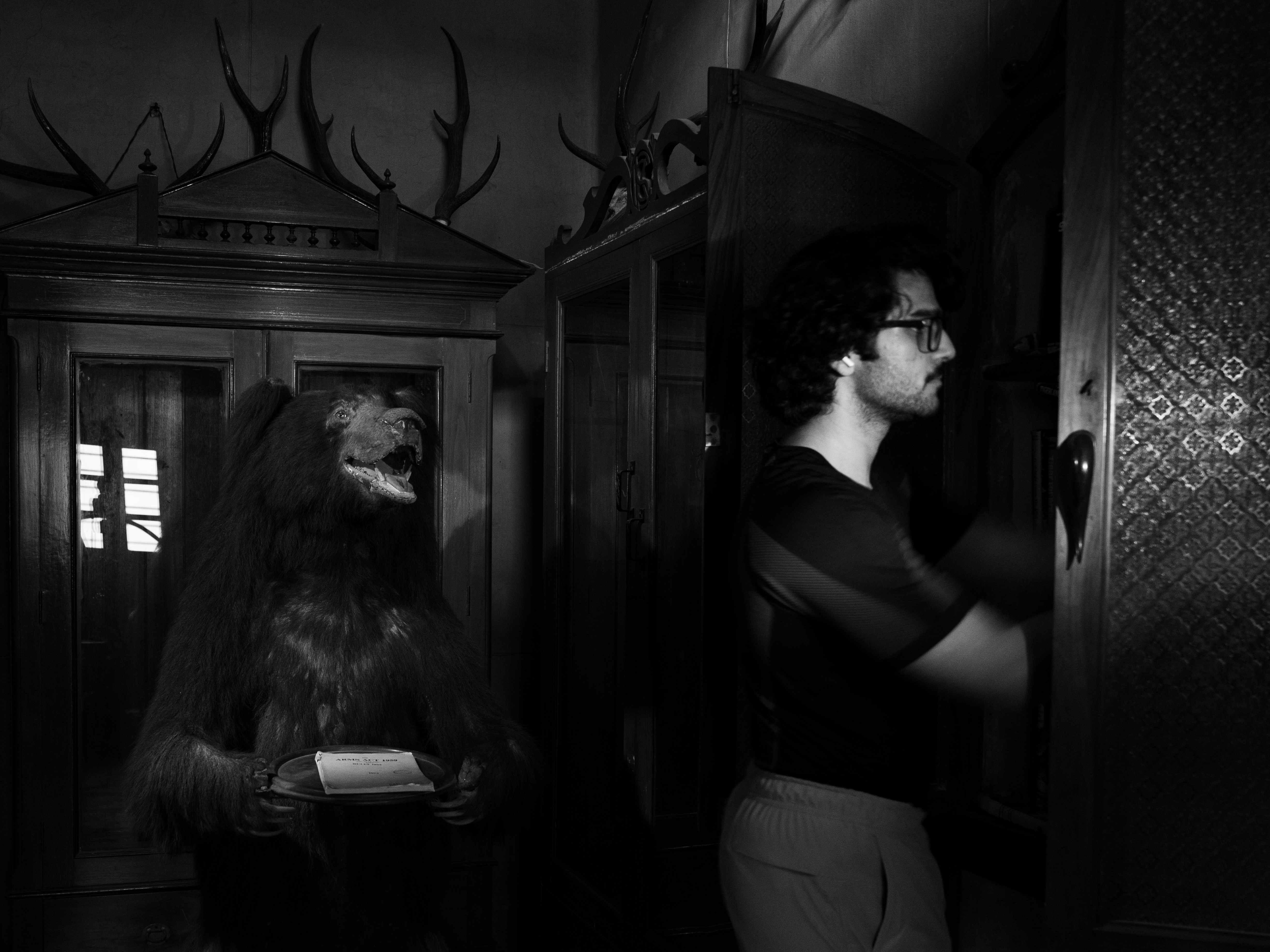 The concept of the Machan still exists today, though its purpose has shifted from animal hunting to wildlife observation for conservation efforts, including wildlife censuses. Inamdar’s work critically explores this shift, highlighting the ongoing influence of colonial hunting practices on current conservation measures. Alongside his photography, Inamdar integrates audio storytelling to capture the experience of a sportsman during a hunting expedition, focusing on nature’s response to the predator-prey dynamic. This multi-disciplinary approach deepens the exploration of historical and contemporary conservation practices, offering a complex perspective on wildlife protection.